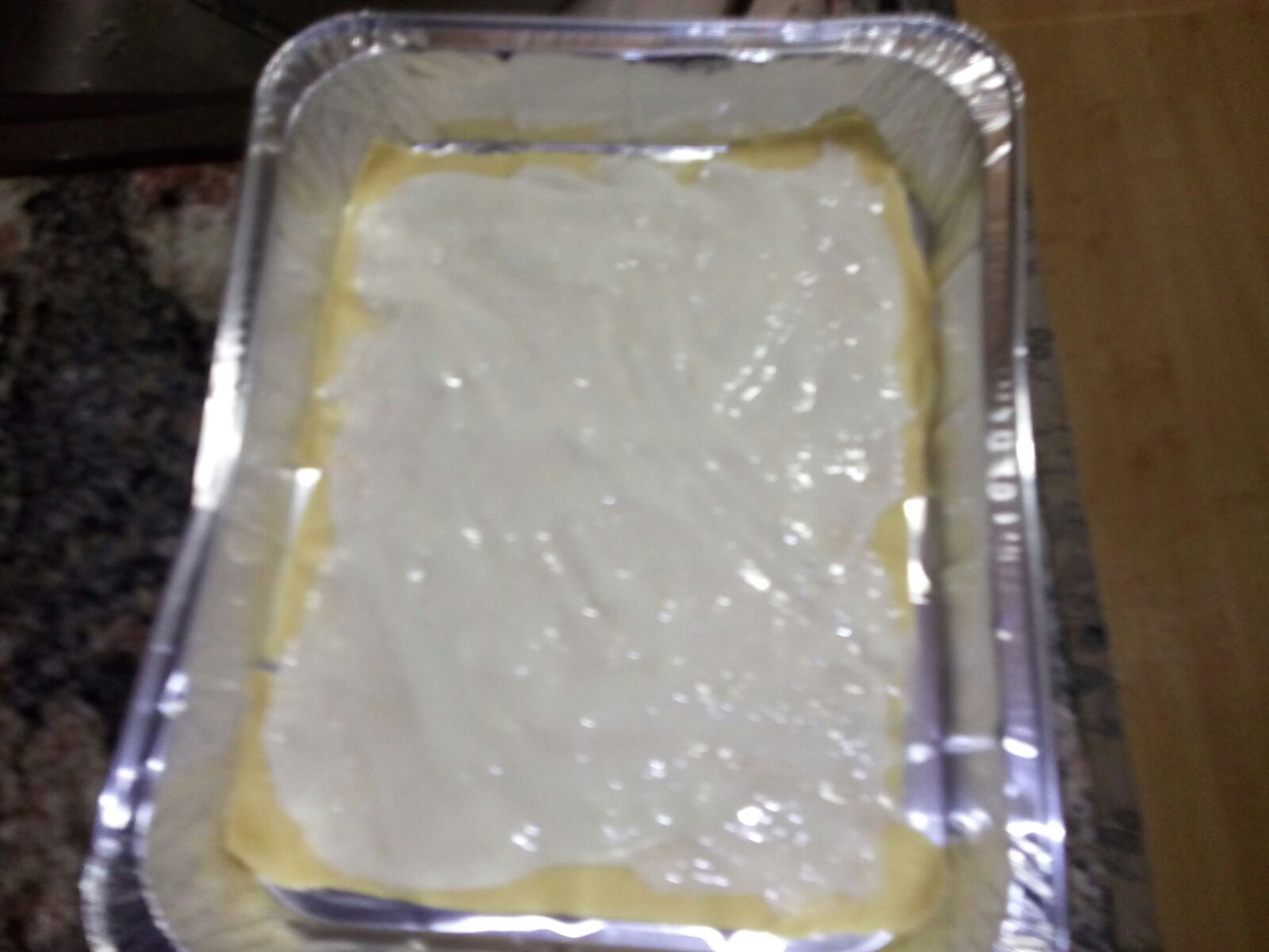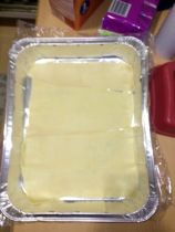 Facciamo bollire le sfoglie per un minuto e poi copriamo (cubrimos) il fondo della teglia (bandeja de horno).